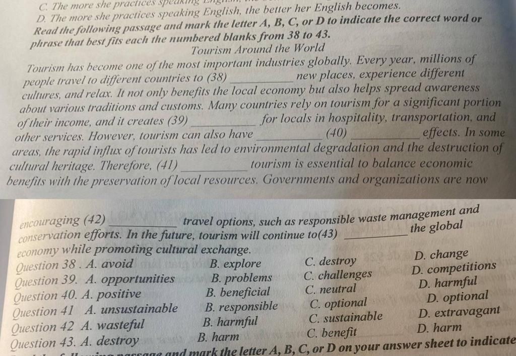 `=>` Hoặc dựa vào đoạn sau : In some areas, the rapid influx of tourists has led to environmental degradation and the destruction of cultural heritage. ( Ở một số khu vực, lượng khách du lịch đổ đến nhanh chóng đã dẫn đến suy thoái môi trường và phá hủy di sản văn hóa).
