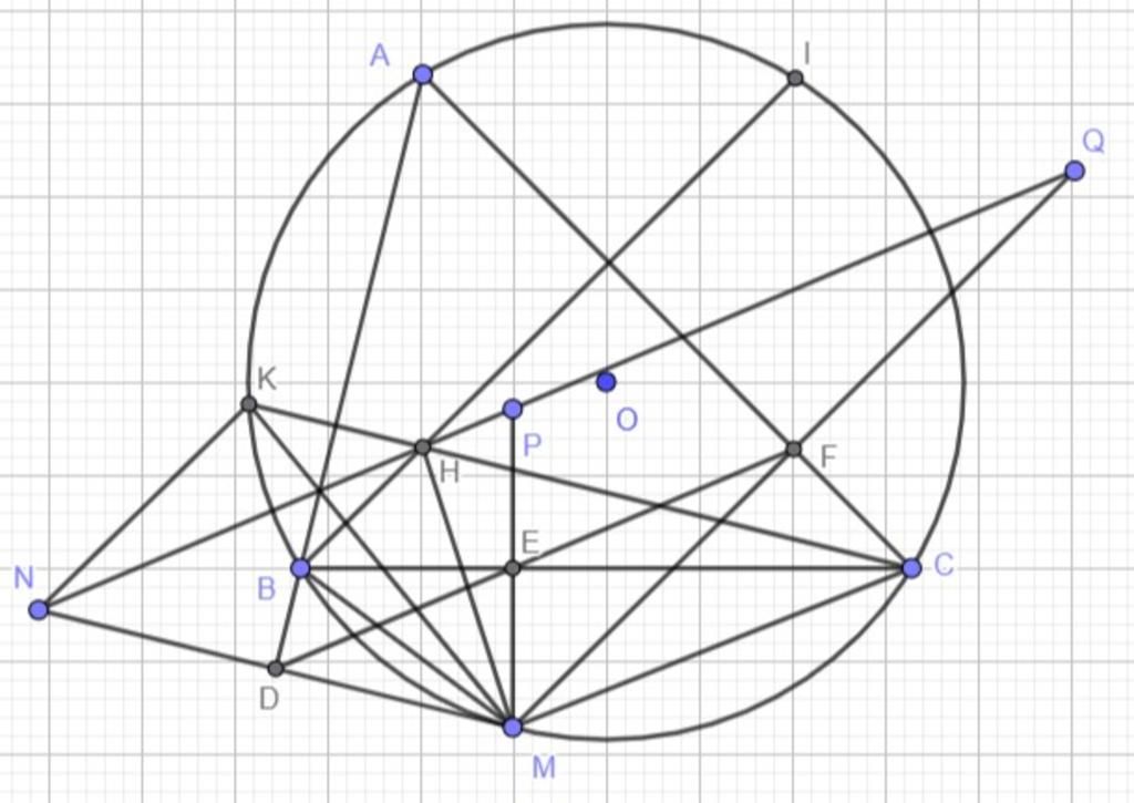 Theo tính chất phép đối xứng trục : `Delta AHQ = Delta AH_1 M , Delta AHN = Delta AH_2M`