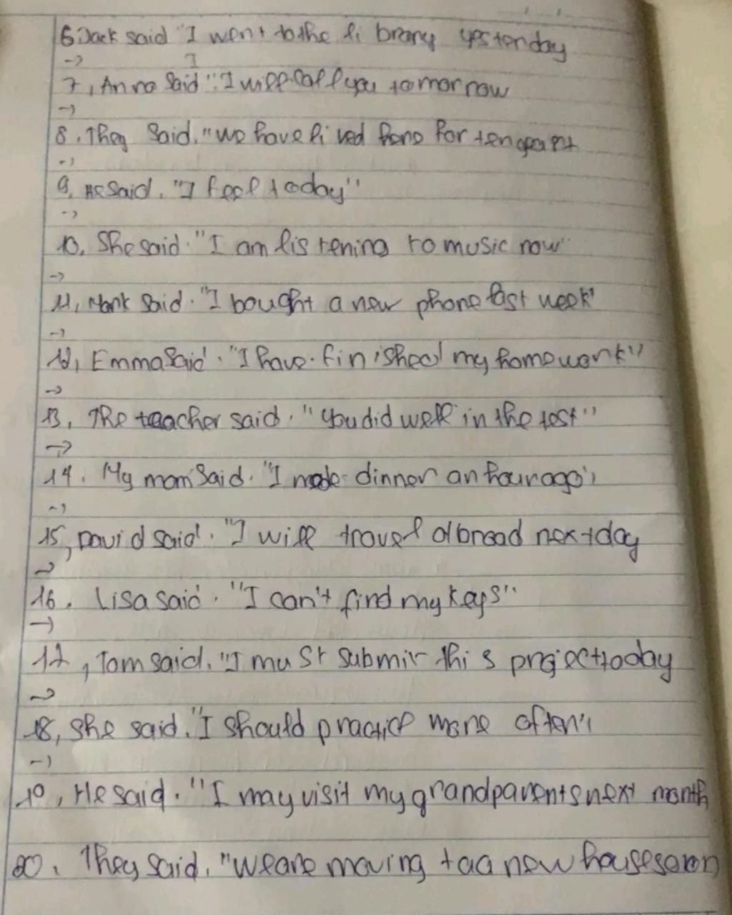 `12.` Emma said that she had finished her homework.