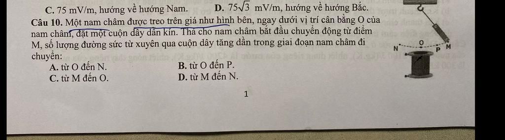 Khi thanh nam châm tiến lại gần vị trí cân bằng O thì số lương đường sức từ gửi qua cuộn dây B sẽ tăng.