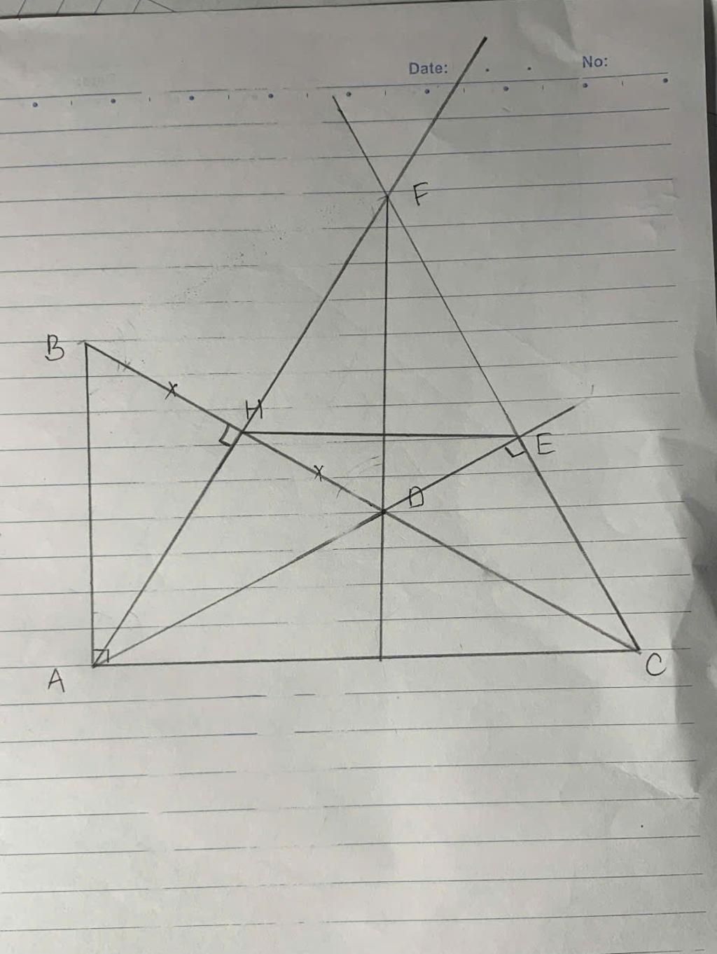 b) * Xét tam giác AFC có AE và CH là đường cao và D là giao điểm của AE và CH