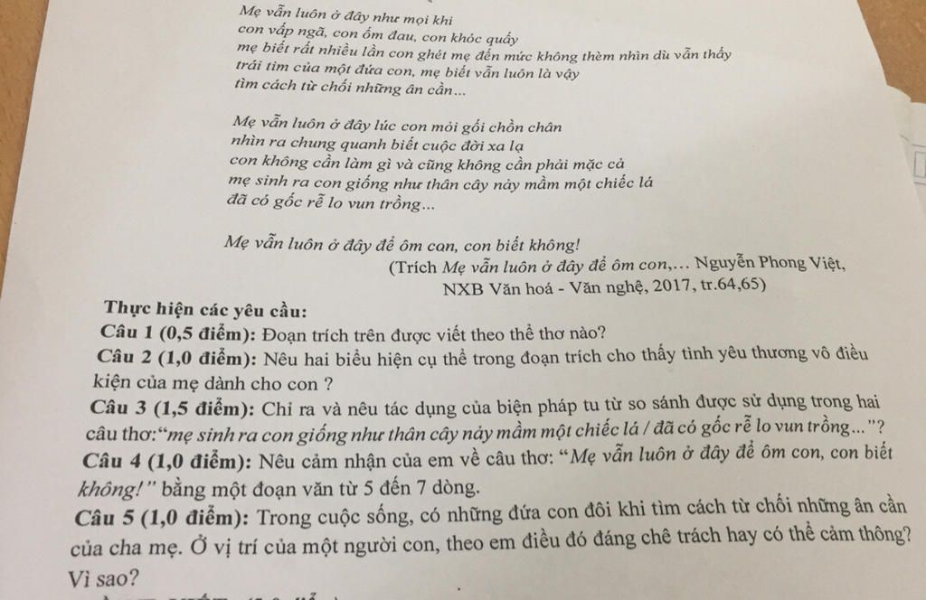 Câu 2 : mẹ vẫn luôn ở đây lúc con mỏi gối chồn chân , mẹ vẫn luôn ở đây để ôm con , con bt ko