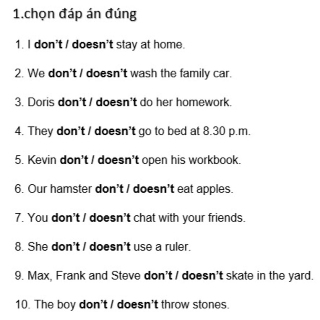 `@` HTĐ - PĐ : S + don't/doesn't + Vbare-inf ...