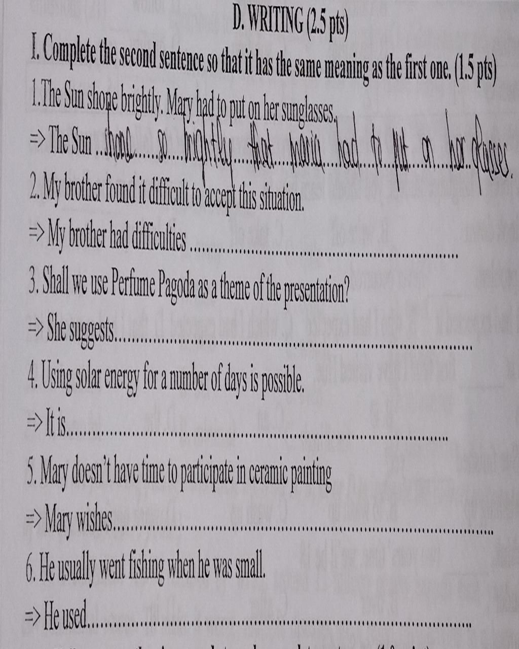 5. Mary wishes she had time to participate in ceramic painting. Câu ước loại 2 ( không có thật ở hiện tại ). Thời gian : "hiện tại"