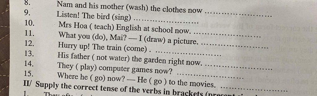 I/ write the correct form of the verbs in brackets(the present progressive tense) giúp mình vs ạ mình cảm ơn