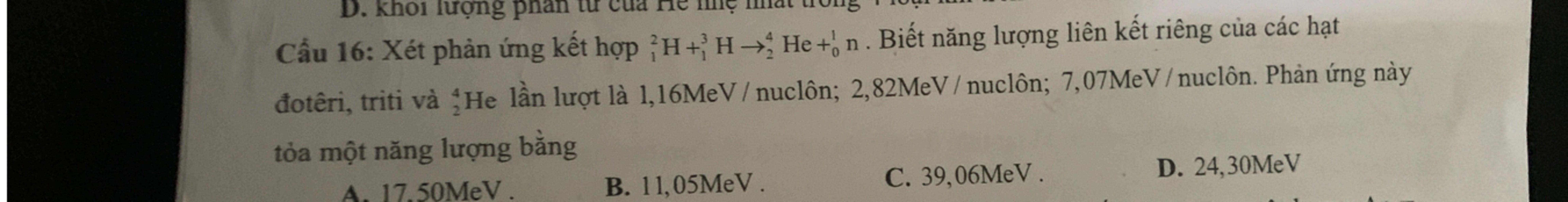 $⇒Q=7,07.4-2.1,16-3.2,82=17,50(MeV)$