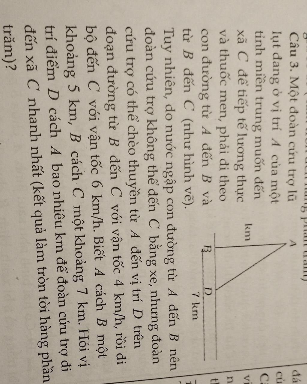 Thời gian đi trên `AD` là: `sqrt(25+x^2)/4 (h)`