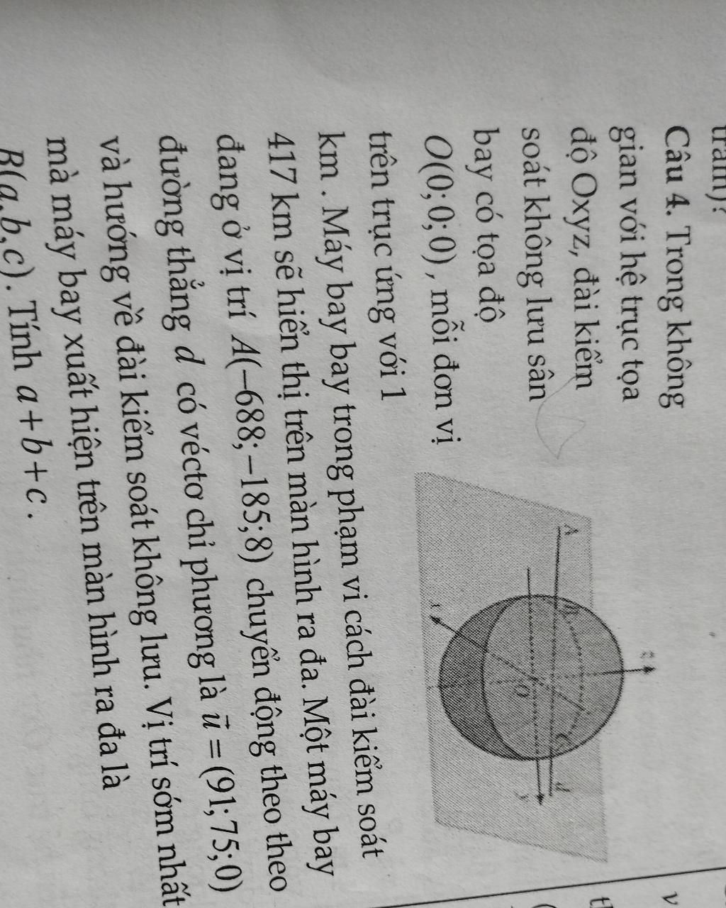 Vì `353,8< 843,4=> AB_2 <AB_1=>B_2(-415;40;8)` là vị trí sớm nhất mà máy bay xuất hiện trên ra đa