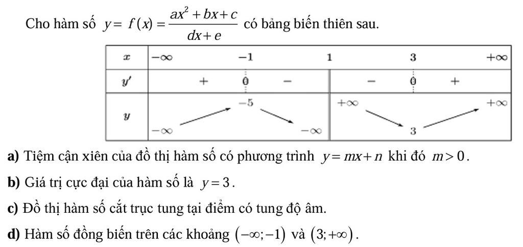 a) Tiệm cận xiên của đồ thị hàm số có phương trình y=mx+n khi đó m>0.