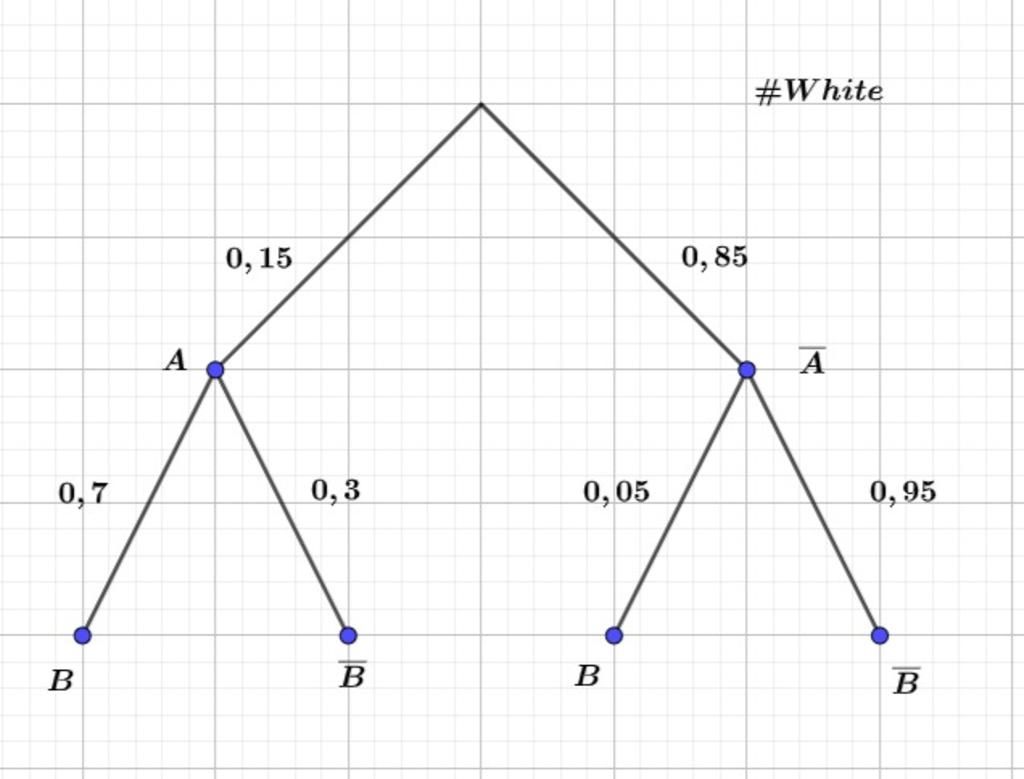 `P(A|B) = (P(A). P(B|A))/(P(A). P(B|A)+P(\overline{A}). P(B|\overline{A})`