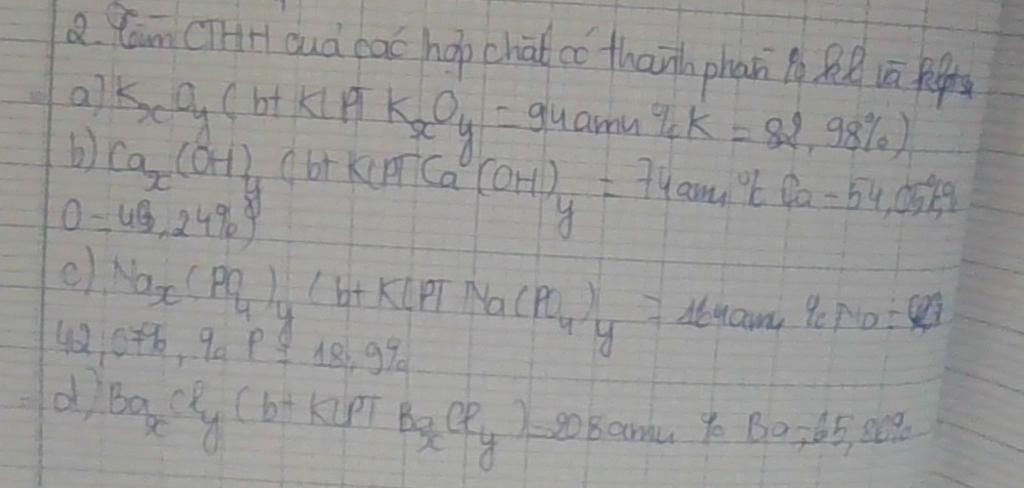 2 làm CTHH của các hợp chất có thành phần là khi và kh
