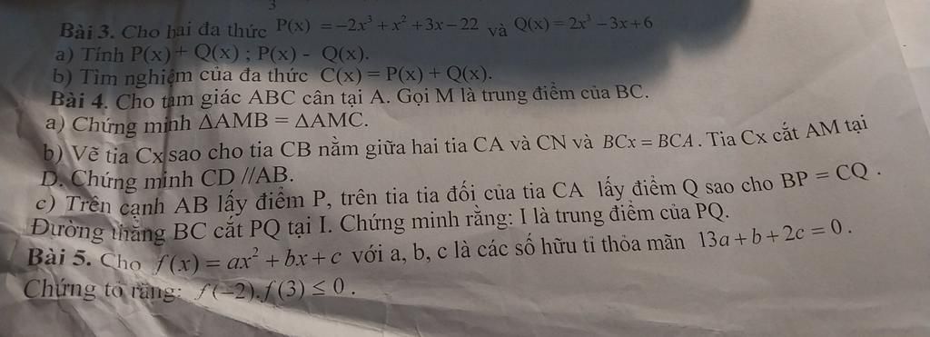 Bài 3. Cho hai đa thức P(x) =−2x +r +3x−22 và