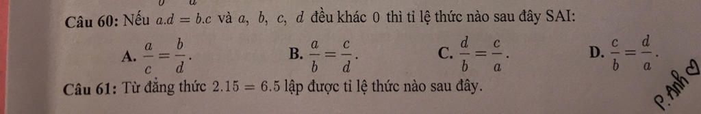 `B. a/b = c/d` (đúng)