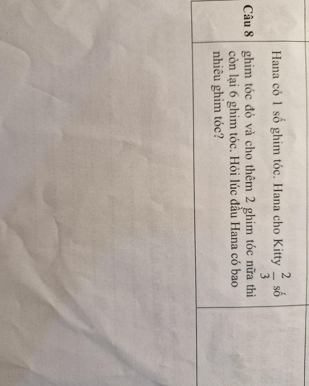 Số ghim tóc còn lại sau khi Hana cho Kitty `2/3` số ghim tóc là: