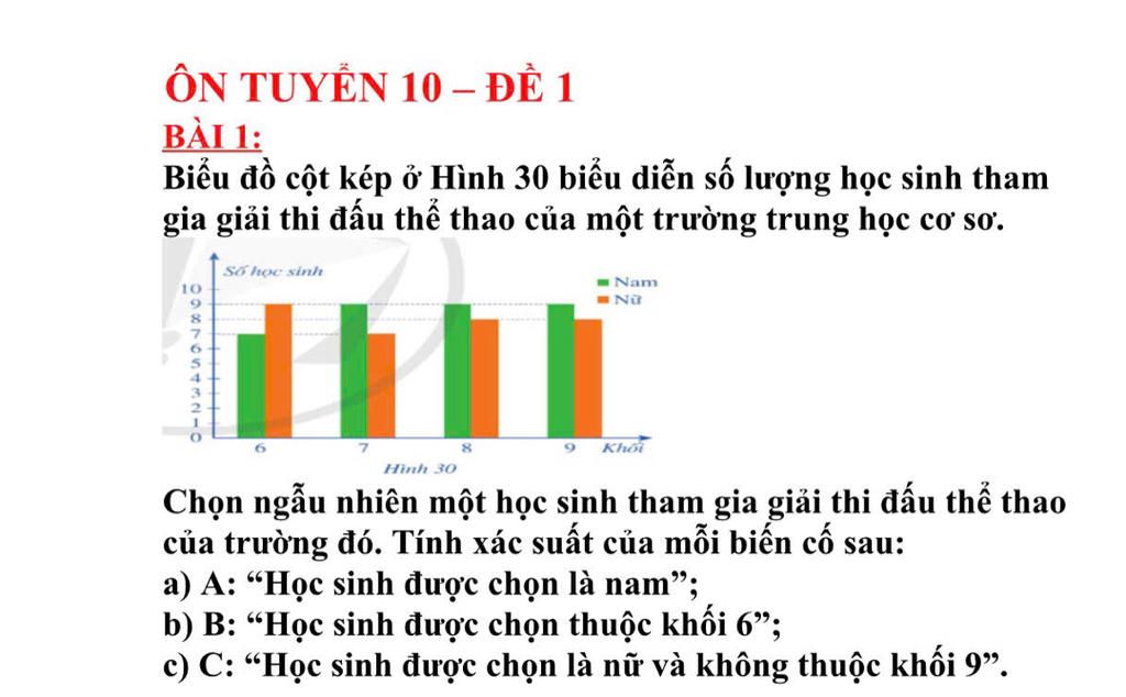 Số học sinh nữ không thuộc khối `9` là `9+7+8=24` học sinh