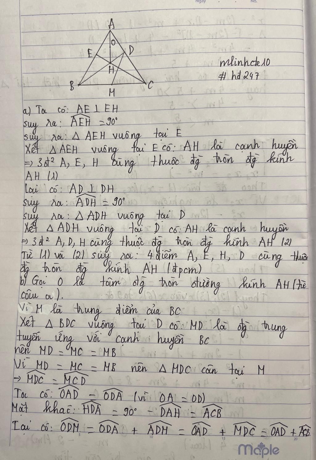 a) CM: bốn điểm A,E,H,D thuọc đtron