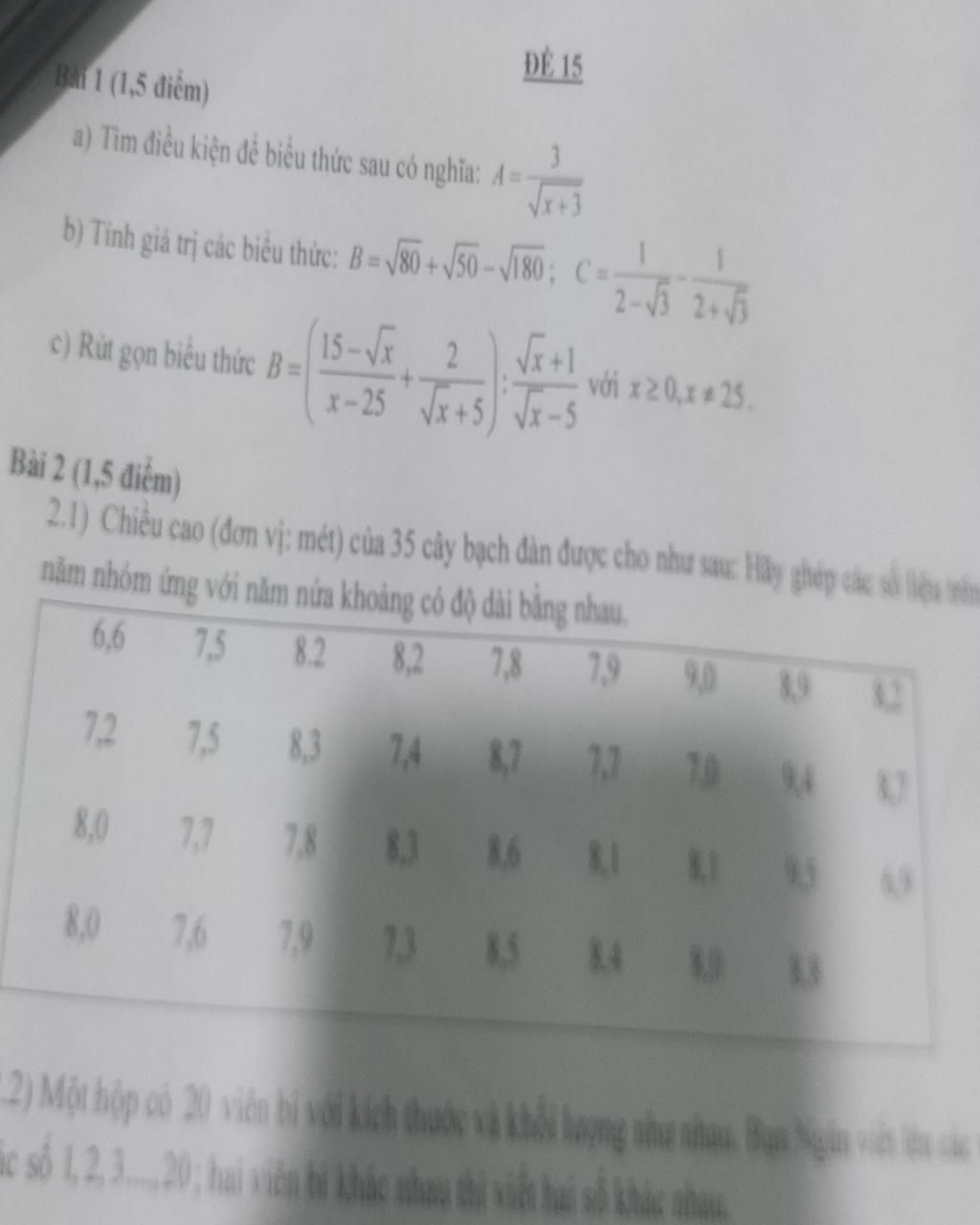2.1) Chiều cao (đơn vị; mét) của 35 cây bạch đàn được cho như sau: Hãy ghép ...
