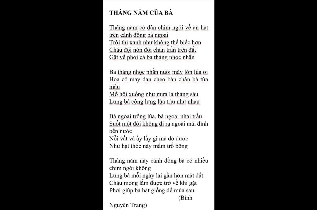 Viết đoạn văn khoảng 200 chữ nêu cảm nhận của em về ng bài trong bài thơ tháng năm của bà
