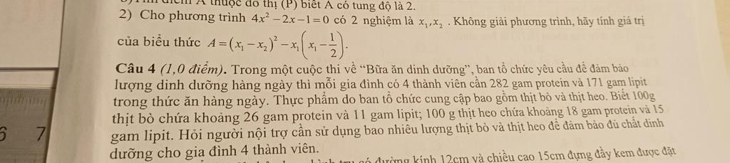 Khi đó, số gam protein và lipit mà số lượng thịt bò cần lần lượt là `26c(g)` và `11c(g)`