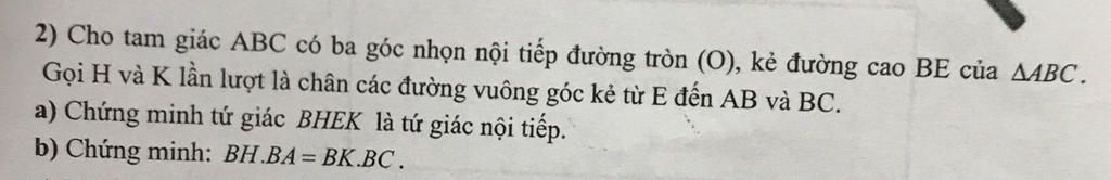 `b)` Do `BHEK` là tứ giác nội tiếp