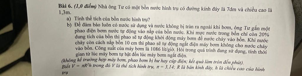 Thời gian từ lúc máy bơm tự bật đến lúc ngắt điện là :