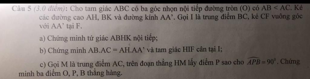 b.Vì $AA'$ là đường kính của $(O)$