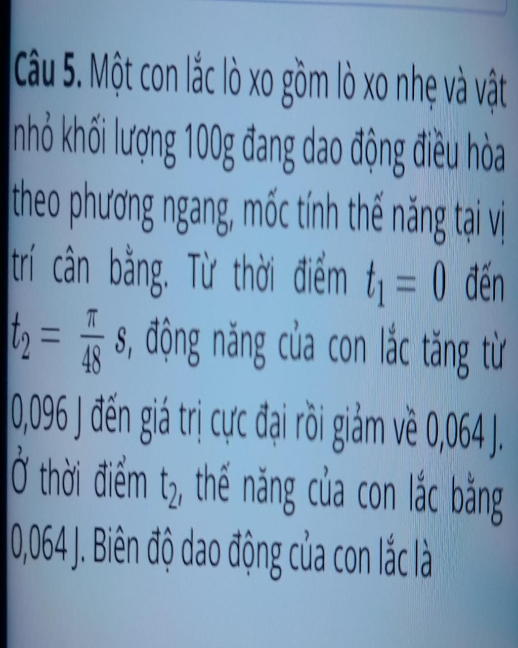 Thời điểm `t_1`: `W_[đ1] = 0,096 (J) = 3/4 W`