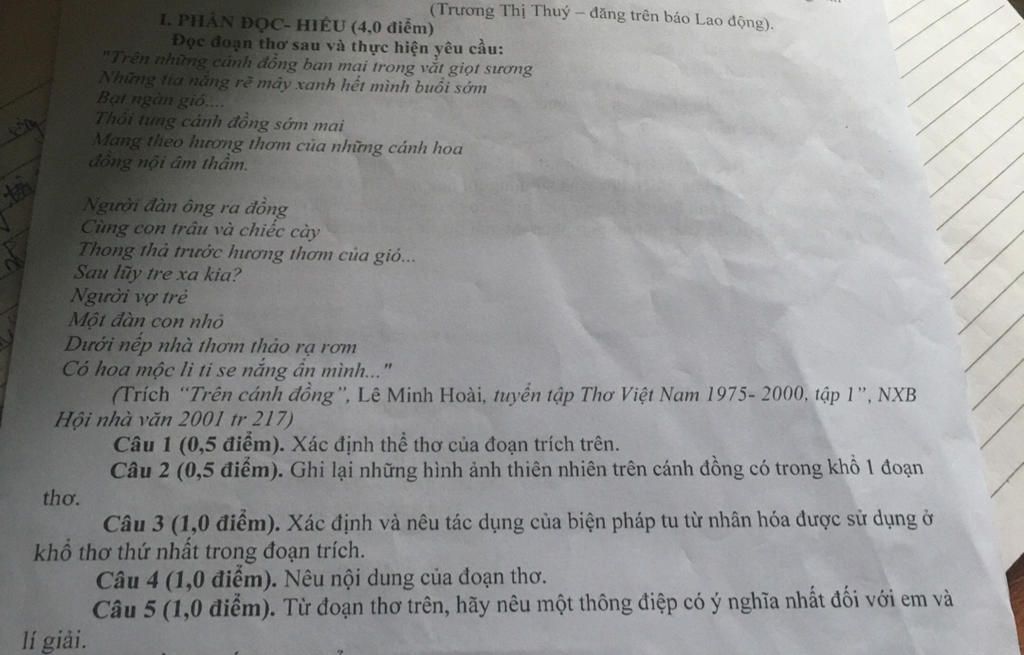 `-` Đoạn thơ trên nhằm khắc hoạ lại vẻ đẹp tươi mới, căng tràn sức sống của bức tranh phong cảnh buổi sớm mai trên cánh đồng: những cảnh vật, quang cảnh tươi đẹp và hoạt động sống của sự vật, con người nơi đây. Qua đó, nhằm bộc lộ tình yêu thiên nhiên, yêu cảnh sắc bình dị, gần gũi nơi làng quê của tác giả.
