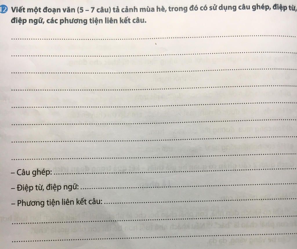 "Tiếng ve kêu râm ran trên những tán phượng vĩ đỏ rực, và lũ chim chích chòe cũng hót líu lo, như khúc ca chào mừng mùa hè." (Nối bằng từ "và")