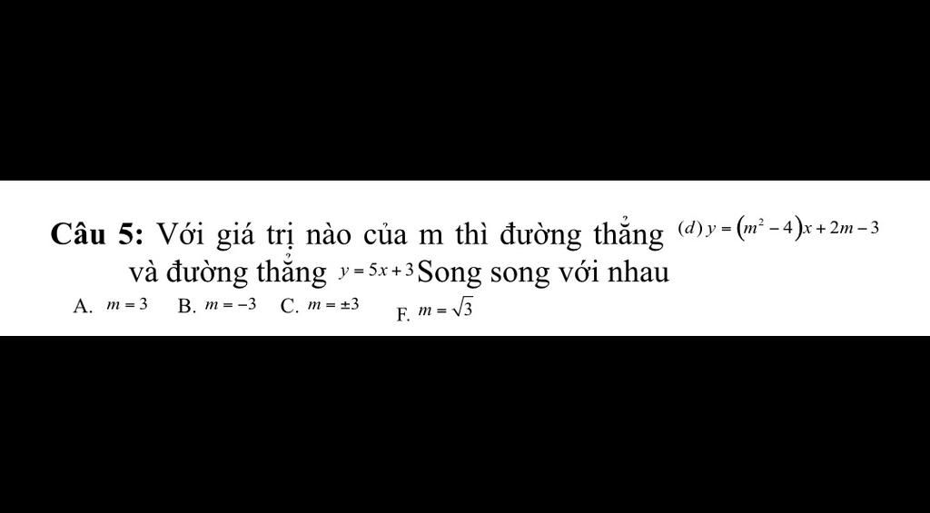 ` -> ` Hệ số góc bằng nhau là ` m^2 - 4 = 5m^2 = 9m = ±3 `