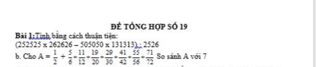 `b ) A = 1/2 + 5/6 + 11/12 + 19/20 + 29/30 + 41/42 + 55/56 + 71/72`