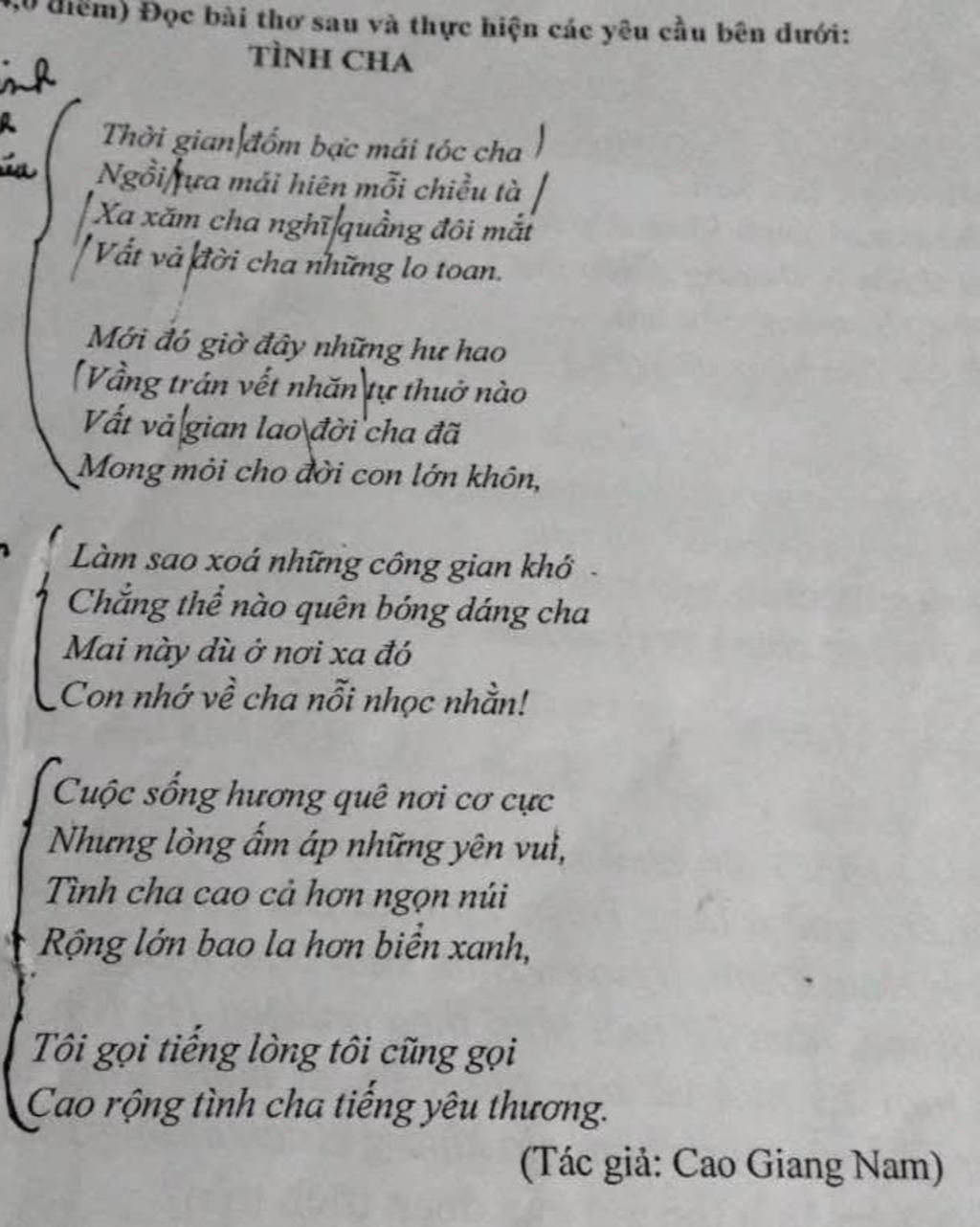`@` Bài thơ Tình cha ca ngợi tình yêu thương bao la, sự hy sinh thầm lặng của người cha dành cho con