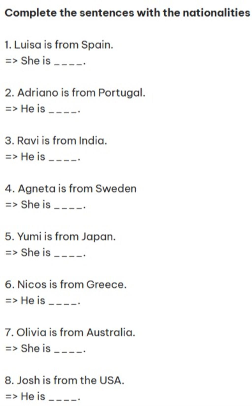 Complete the sentences with the nationalities
