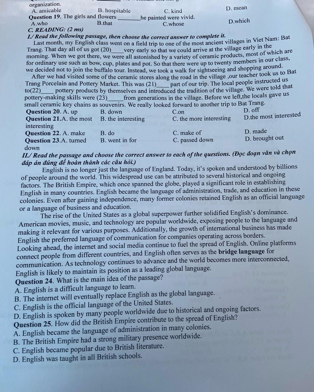 ⇒ ND chính : Tiếng Anh được nói bởi nhiều người trên toàn cầu bởi vì yếu tố lịch sử và liên tục.