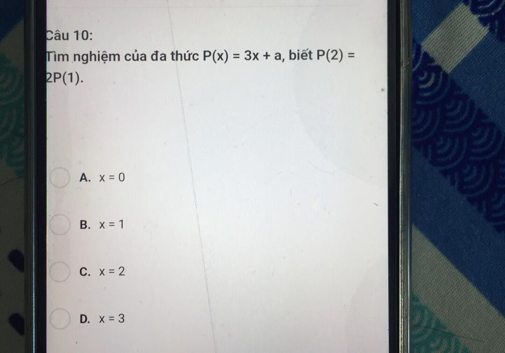 Ta thế $a=0$ vào đa thức $P(x)=3x+a$