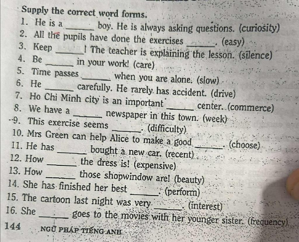 `-` cần điền adj mô tả cho N (the cartoon)