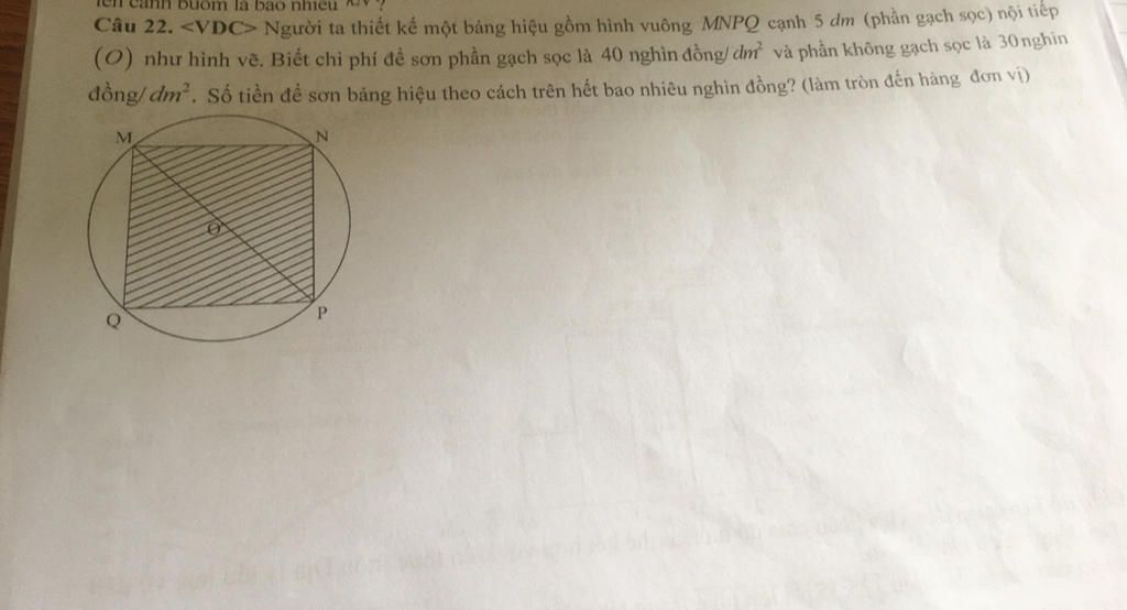 Độ dài đường chéo hình vuông `MNPQ` cũng là độ dài đường kính hình tròn.