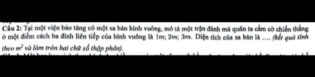 Vì sa bàn là hình vuông, nên các cạnh đều bằng nhau. Chọn cạnh bất kỳ, ví dụ cạnh 2 = 2m.