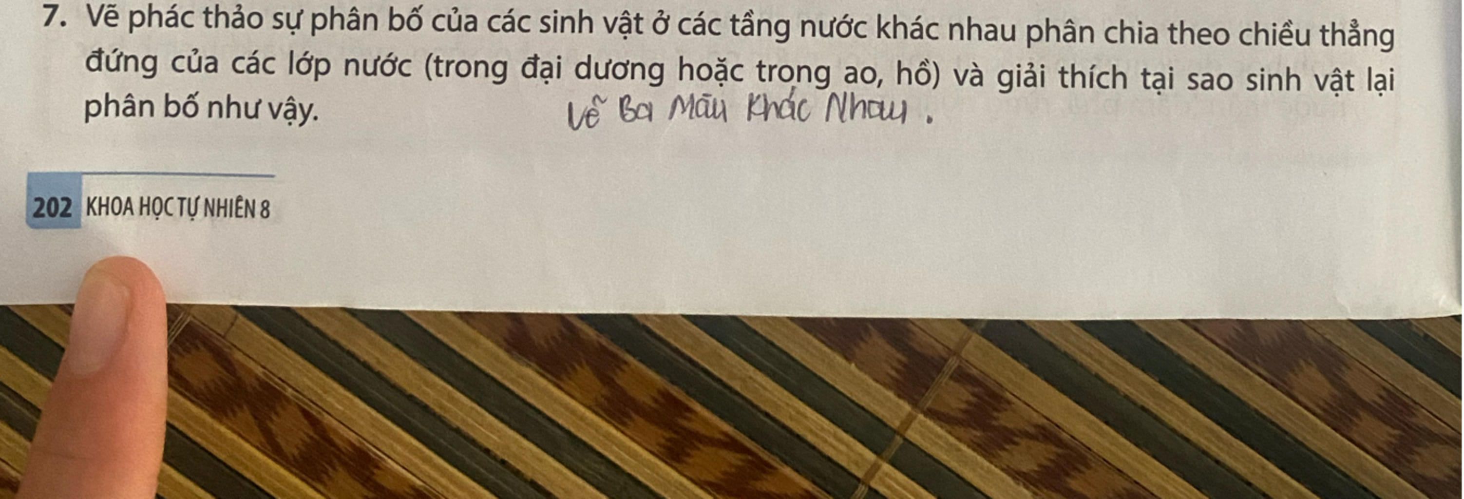 7. Vẽ phác thảo sự phân bố của các sinh vật ở các tầng nước khác nhau phân chia theo chiều thẳng