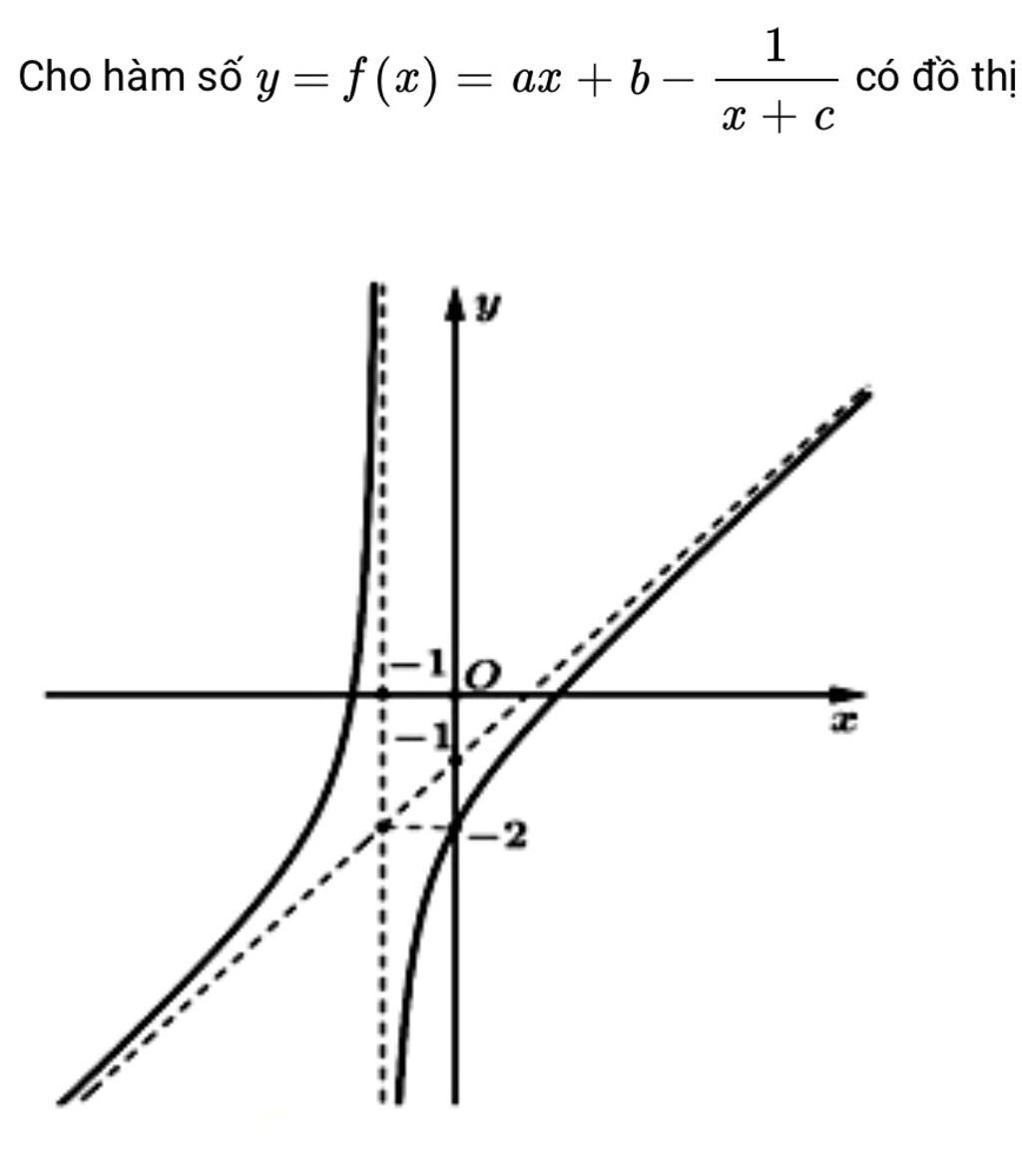 `f(x)=ax+b-1/(x+c)=>{("Tiệm cận xiên:"\ y=ax+b),("Tiệm cận đứng:"\ x=-1):}`