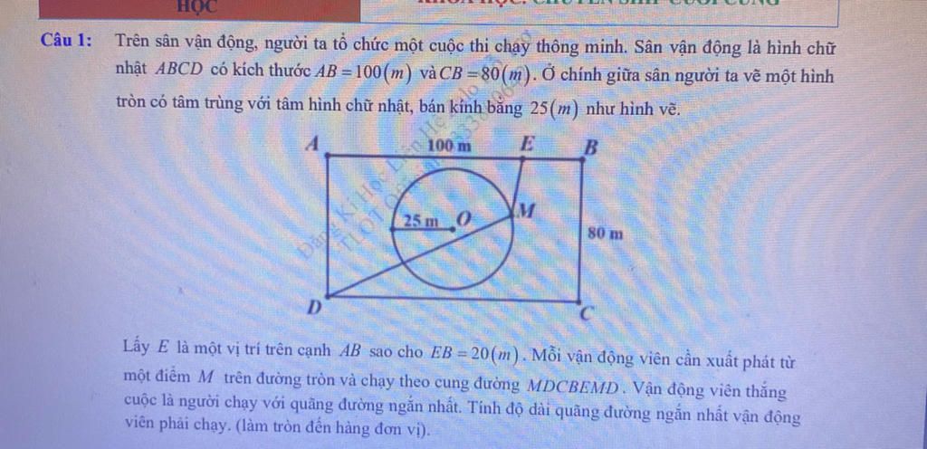 tròn có tâm trùng với tâm hình chữ nhật, bán kính băng 25(m) như hình vẽ.