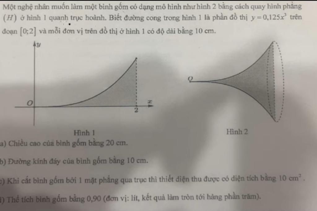 a) Chiều cao bình gốm là: 2.10=20 cm