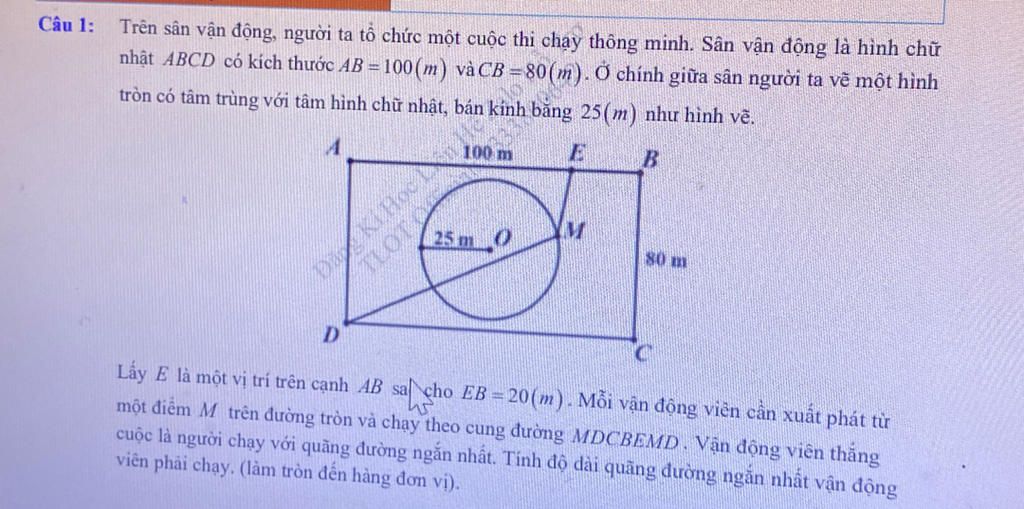 Vậy $\Leftrightarrow S=T+DC+CB+BE\ge 200+5\sqrt{929}\approx 352m$.