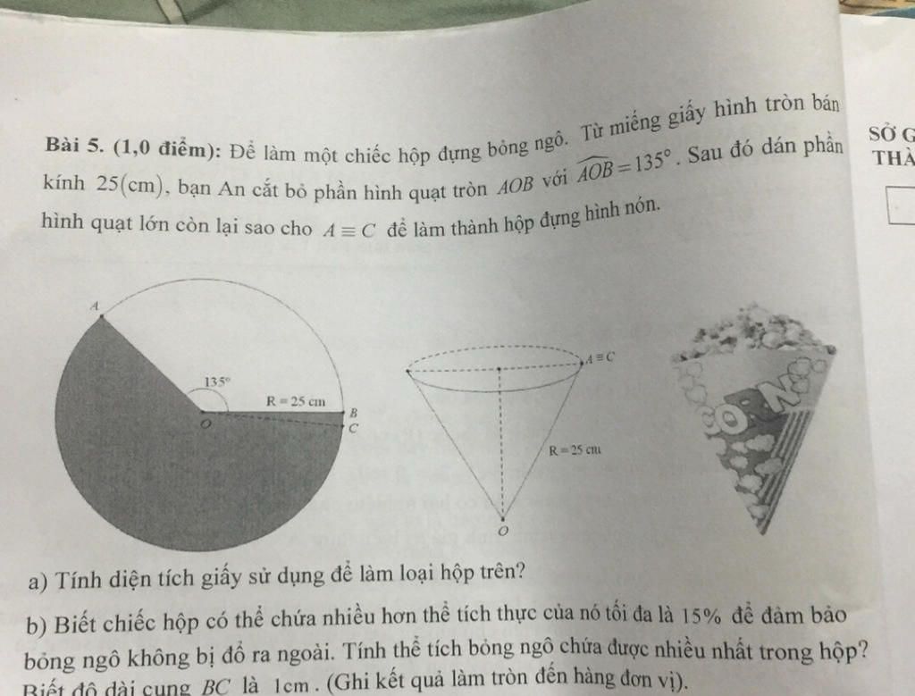 b.Gọi bán kính đáy của hộp là $r, r>0$