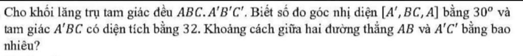 Vì $ABC.A'B'C'$ là lăng trụ đứng tam giác đều
