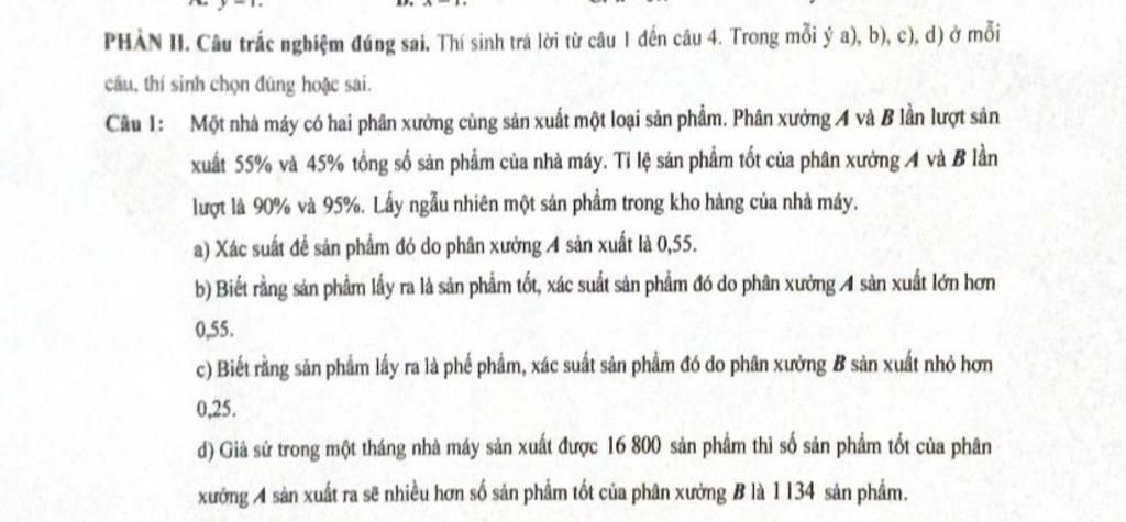 `to` Xác suất sản phẩm là do phân xưởng `bbB` sản xuất biết đó là sản phẩm không tốt là: