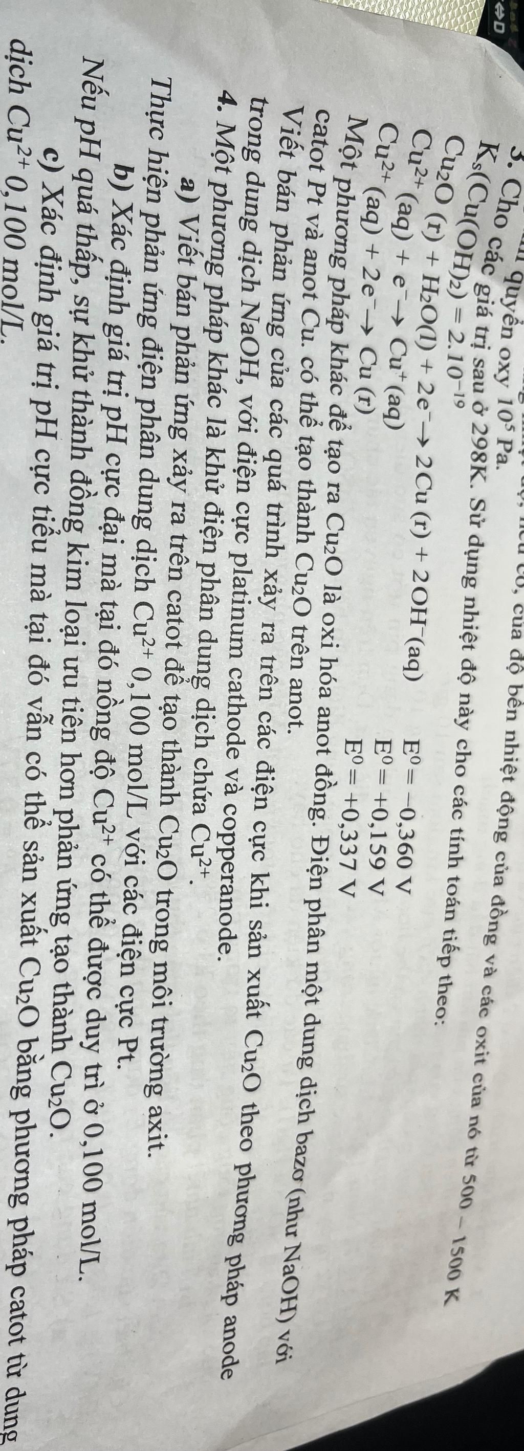 Để pH min thì `E_{Cu^{2+}//Cu}=E_{Cu^{2+}//Cu_2O}`