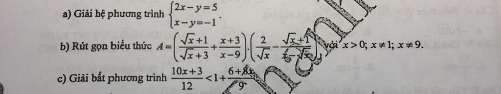 `a)` `{(2x - y = 5),(x - y = -1):}`