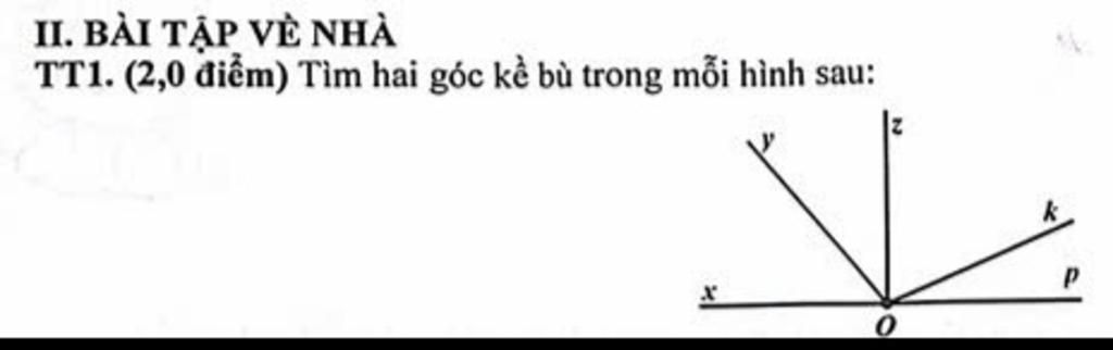 Hai góc kề bù đó là `\hat(xOz)` và góc `\hat(pOz)`