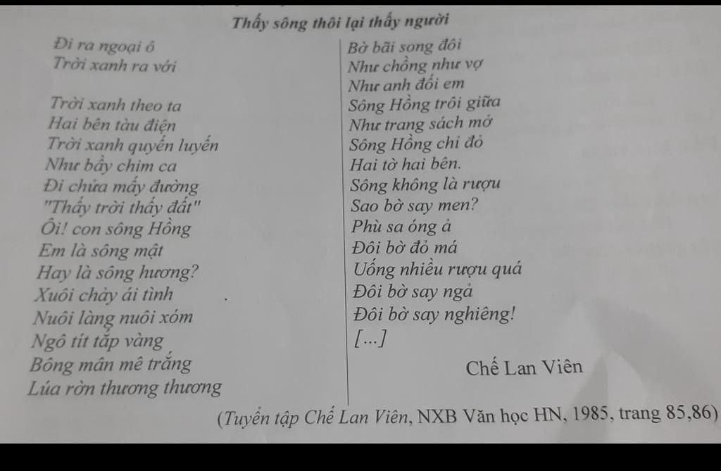 `@` Qua bài thơ " Thấy sông thôi lại thấy người " cho cho tôi thấy được tình yêu quê hương sâu sắc, ý nghĩa trong tâm hồn của mỗi người như tôi. Được nhà thơ thể hiện qua hình ảnh của một dòng sông, dòng sống ấy được ví như là một người vợ, người tình là người mà sẽ gắn bó, chan chắc ân tình của bản thân mình với mảnh đất và con người của quên hương đất nước Việt Nam ta. Tình yêu lơn lao ấy không chỉ thể hiện qua cảm xúc mà còn thể hiện được sự tự hào, sự biết ơn và luôn mang trong mình một sựu trân trọng với những vẻ đẹp giản dị, quen thuộc của quê hương đất nước . Dù con người Việt đi đến nơi đâu đi nữa, những lại luôn mang trong mình hình bóng của quên nhà trong trái tim của bản thân. Vì vậy , tình yêu quê hương đất nước chính là nguồn là nơi để tôi có động lực để sống tốt hơn và có trách nhiệm hơn với nơi mà tôi được sinh ra đời.